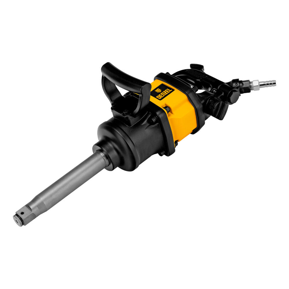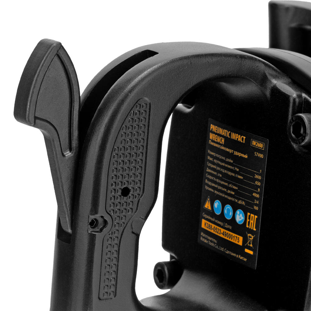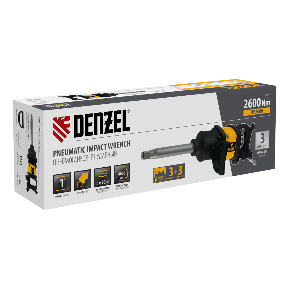 Ударный пневмогайковерт Denzel IW2600 57490 с присоединительным квадратом 1" обеспечивает скорость вращения вала 4000 об/мин и развивает крутящий момент до 2600 Нм. Предназначен для монтажа и демонтажа резьбовых соединений. Алюминиевый корпус выдерживает высокие нагрузки, инструмент подходит для профессионального использования.