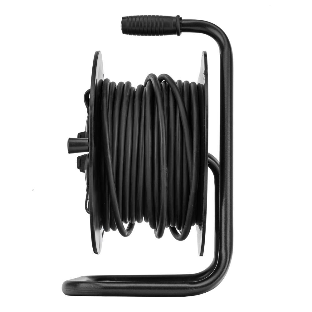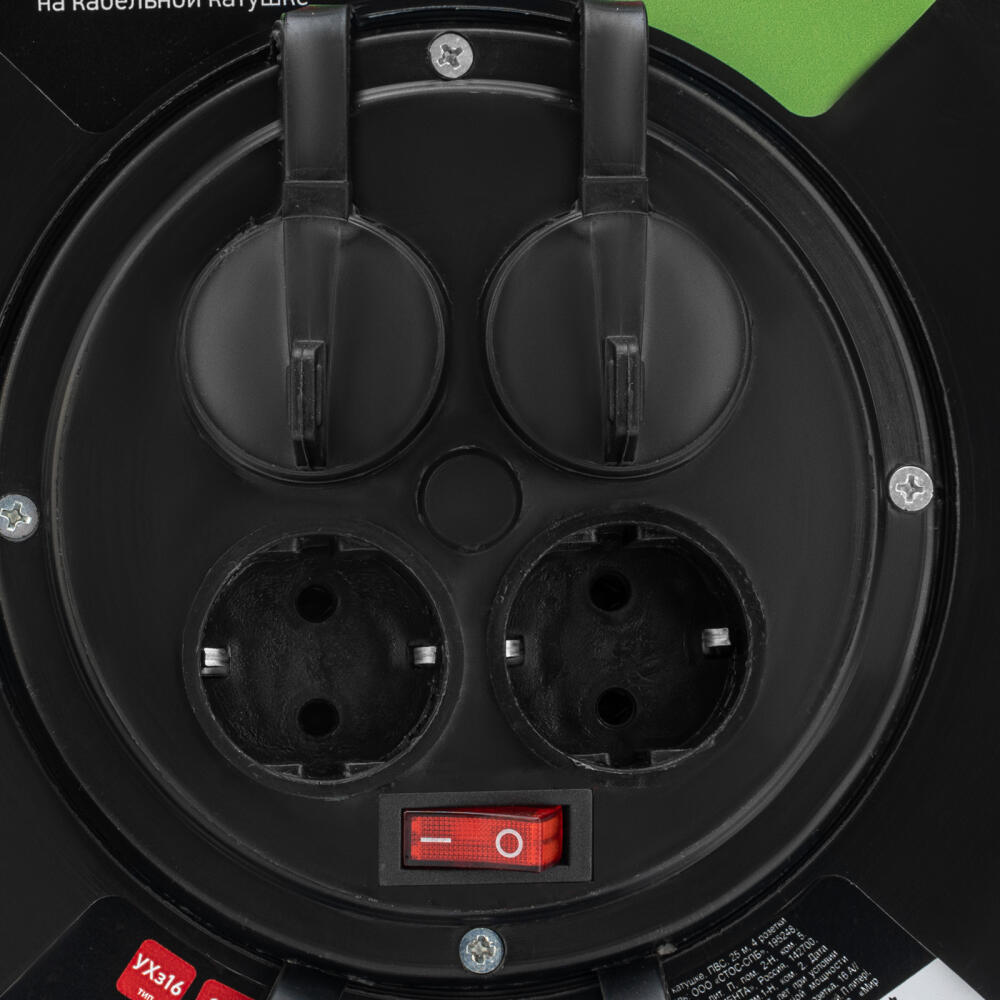 Силовой удлинитель на кабельной катушке Сибртех 96047 типа УХз16, со степенью защиты IP44, рассчитан на силу тока 16 А и имеет 4 розетки с крышкой для подключения различного электрооборудования суммарной мощностью 3500 Вт, используемого на расстоянии до 25 м от стационарного источника питания. Удобная рукоятка облегчает разматывание и сматывание кабеля. Заземляющие контакты розеток предотвращают поражение пользователя электрическим током. Розетки закрываются крышками, защищающими разъемы от попадания влаги и грязи. Сетевой удлинитель пригодится для работы с инструментом на строительной площадке или дачном участке.