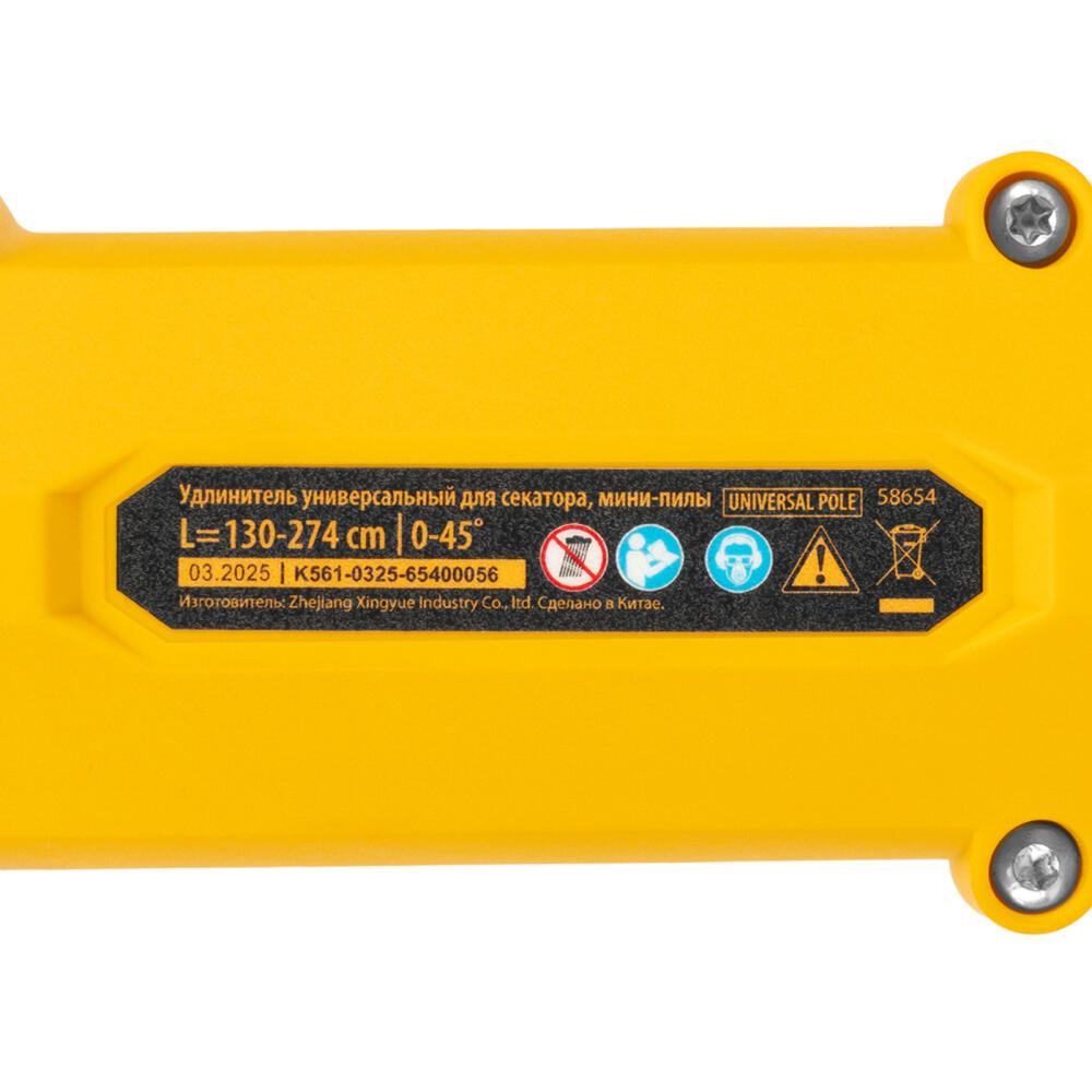 Универсальный удлинитель Denzel CCS-150 58654 совместим с секаторами 59434, 59438 и цепной мини-пилой 58653, а также с аккумуляторами единой платформы Denzel Power System 20 V. Позволяет срезать высоко расположенные ветки и сучки без использования стремянки или лестницы. Длина инструмента регулируется в диапазоне 130-274 см при помощи телескопической рукоятки. Удлинитель облегчает уход за кустами и деревьями в саду и на дачном участке.