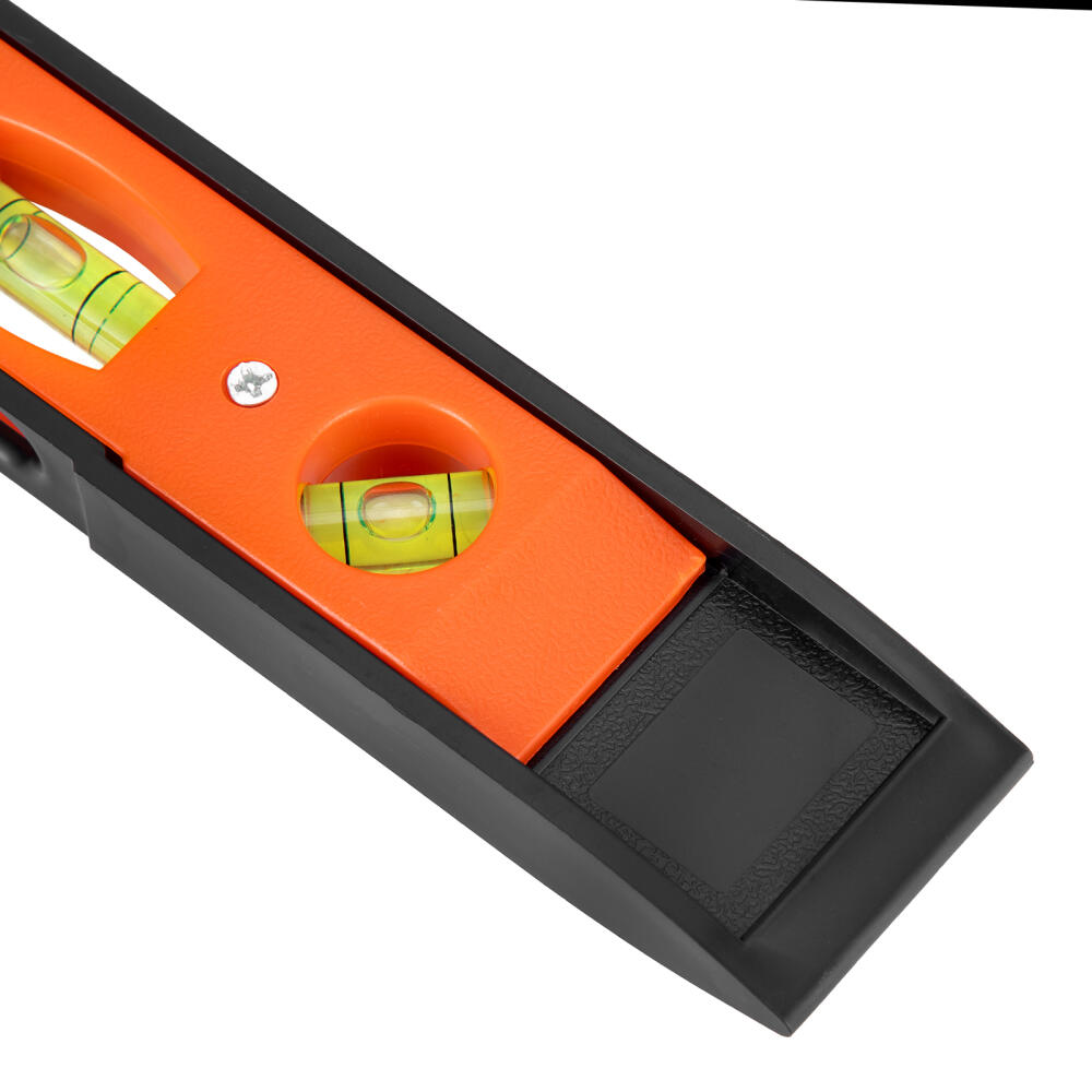Пластмассовый магнитный уровень Sparta «Торпедо» (II) 346055 длиной 225 мм, с 3 глазками, используется для контроля соответствия поверхностей вертикальной и горизонтальной плоскостям, а также углу 45°. Компактный инструмент удобен для работы в труднодоступных местах.