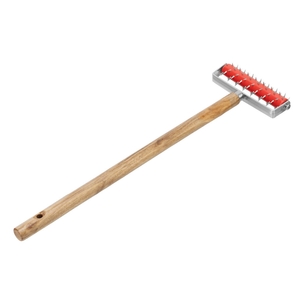 Игольчатый валик для гипсокартона MTX 87901 шириной 150 мм с деревянной ручкой 500 мм предназначен для ремонтных и отделочных работ. Он служит для перфорации поверхности ГКЛ с целью ее последующего увлажнения. Валик облегчает снятие обоев и подготовку гипсокартона к изгибанию.