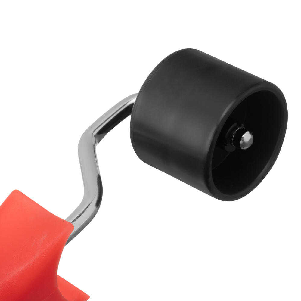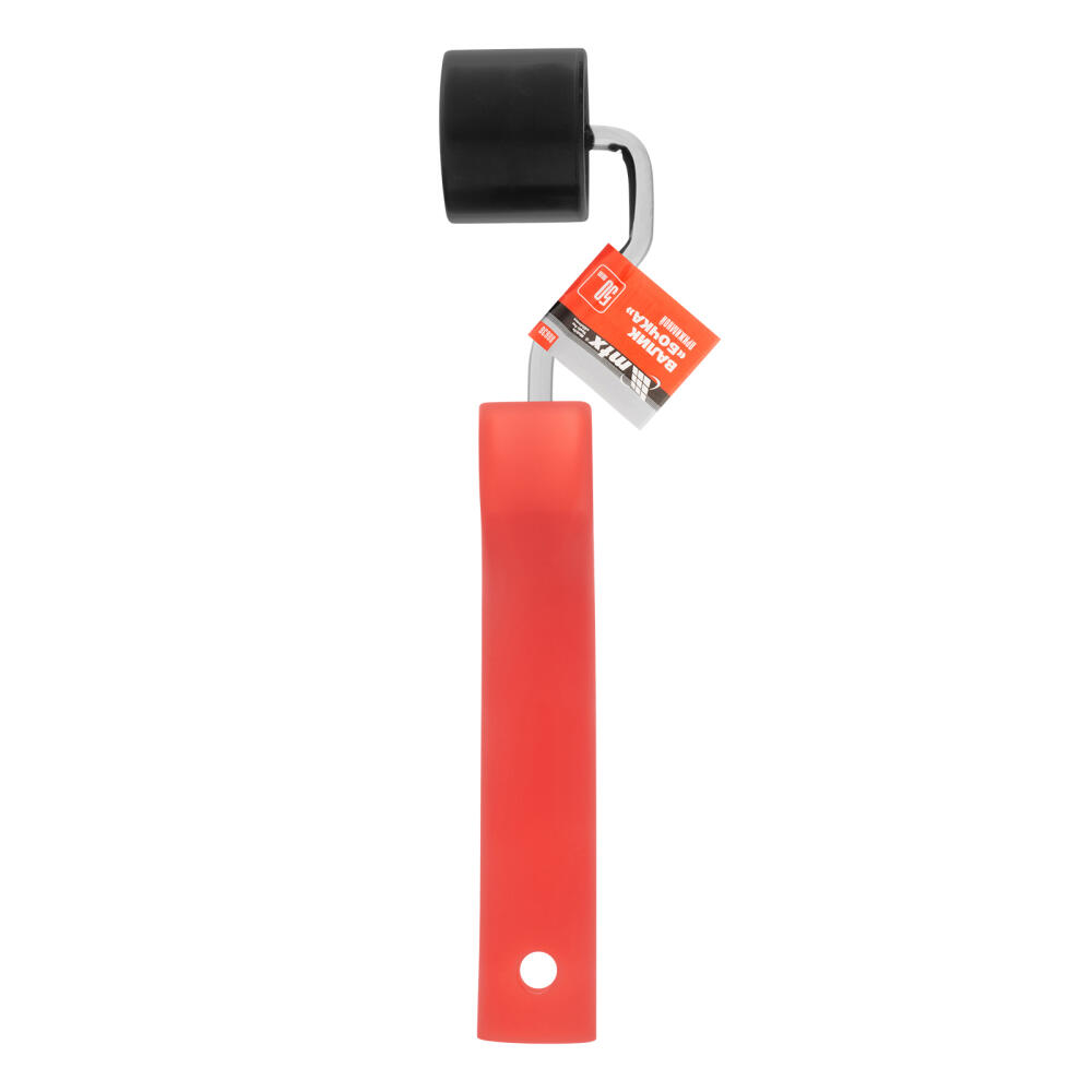 Прижимной валик MTX «Бочка» 80636 из пластмассы, шириной 50 мм, с ручкой 6 мм, предназначен для прикатки швов при наклеивании обоев. Его применение повышает качество работ — валик с ровной поверхностью плотно прижимает и разглаживает обойное полотно, удаляя воздушные пузырьки.