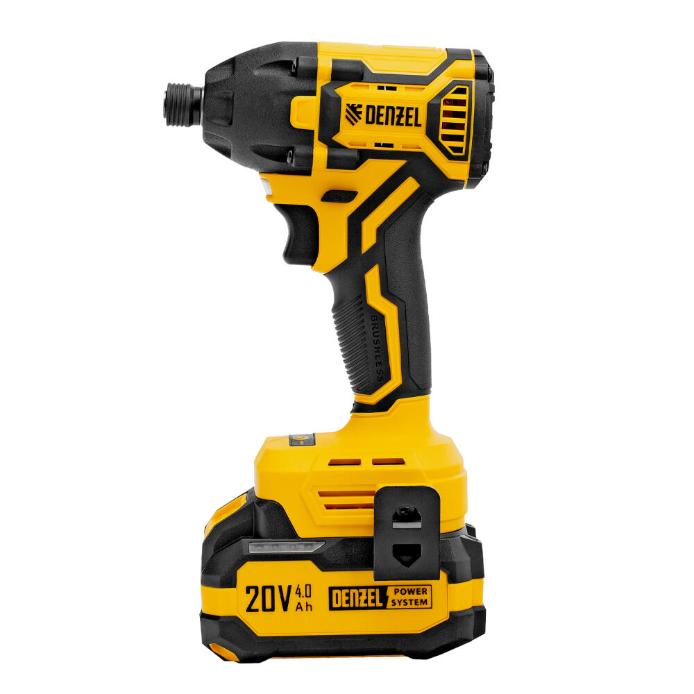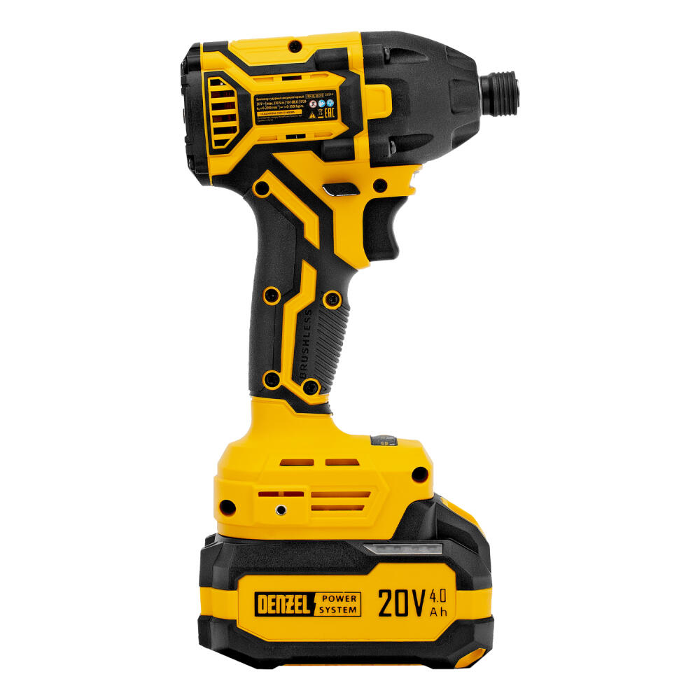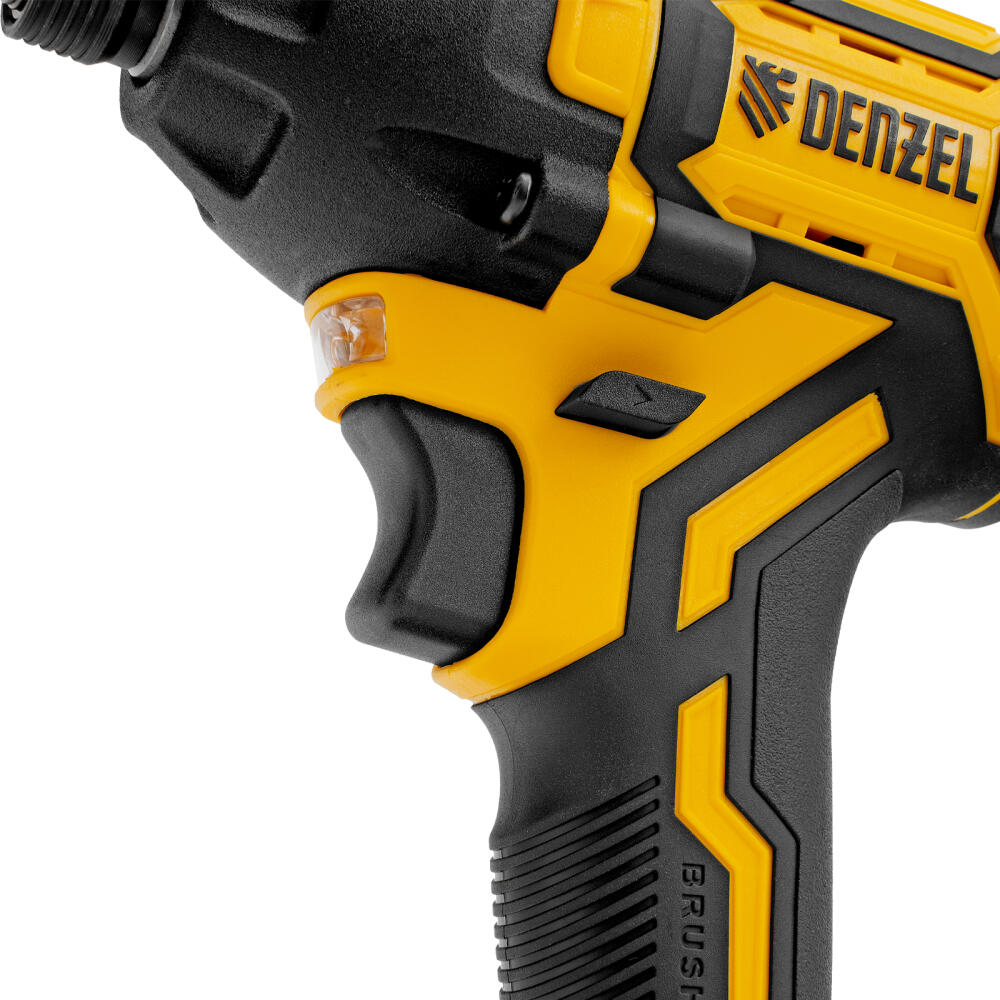 Аккумуляторный ударный винтоверт Denzel CIDH-BL-20-270 26514 с бесщеточным двигателем работает от аккумулятора Li-Ion 20 В и предназначен для работы с резьбовым крепежом: винтами, шурупами, гайками. Максимальный крутящий момент достигает 270 Н·м, что позволяет эффективно решать поставленные задачи. Частота вращения шпинделя плавно регулируется в пределах установленного диапазона путем изменения степени нажатия на клавишу выключателя — такое решение облегчает настройку оптимального режима работы. Ударный механизм позволяет успешно справляться с туго затянутым или заржавевшим крепежом.