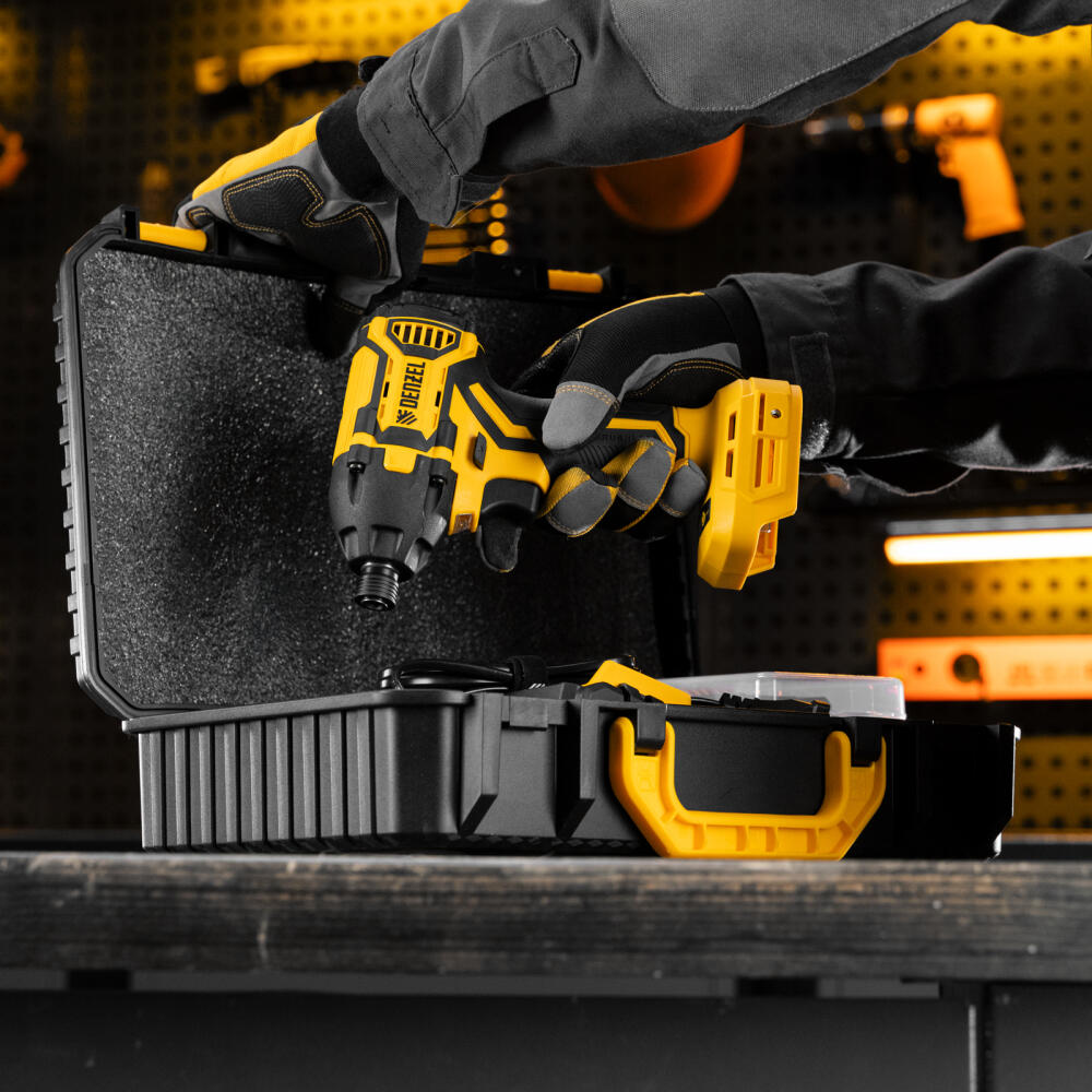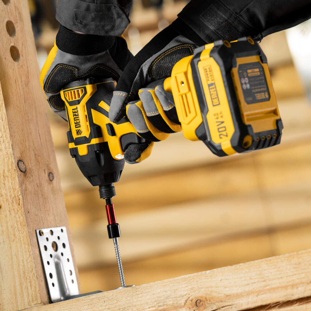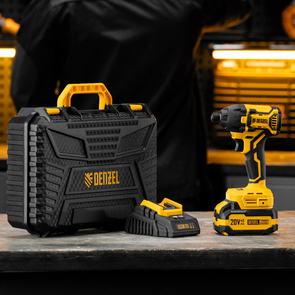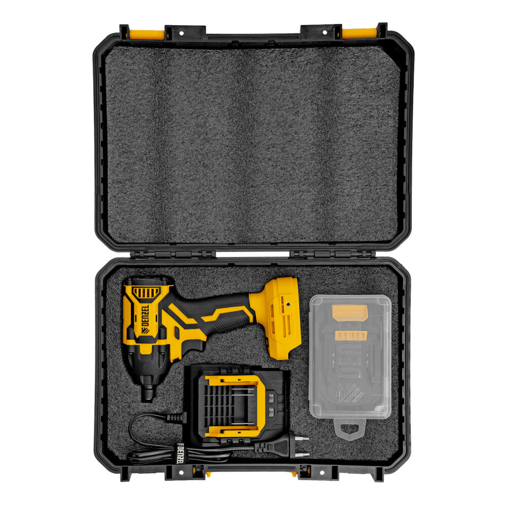 Аккумуляторный ударный винтоверт Denzel CIDH-BL-20-270 26514 с бесщеточным двигателем работает от аккумулятора Li-Ion 20 В и предназначен для работы с резьбовым крепежом: винтами, шурупами, гайками. Максимальный крутящий момент достигает 270 Н·м, что позволяет эффективно решать поставленные задачи. Частота вращения шпинделя плавно регулируется в пределах установленного диапазона путем изменения степени нажатия на клавишу выключателя — такое решение облегчает настройку оптимального режима работы. Ударный механизм позволяет успешно справляться с туго затянутым или заржавевшим крепежом.