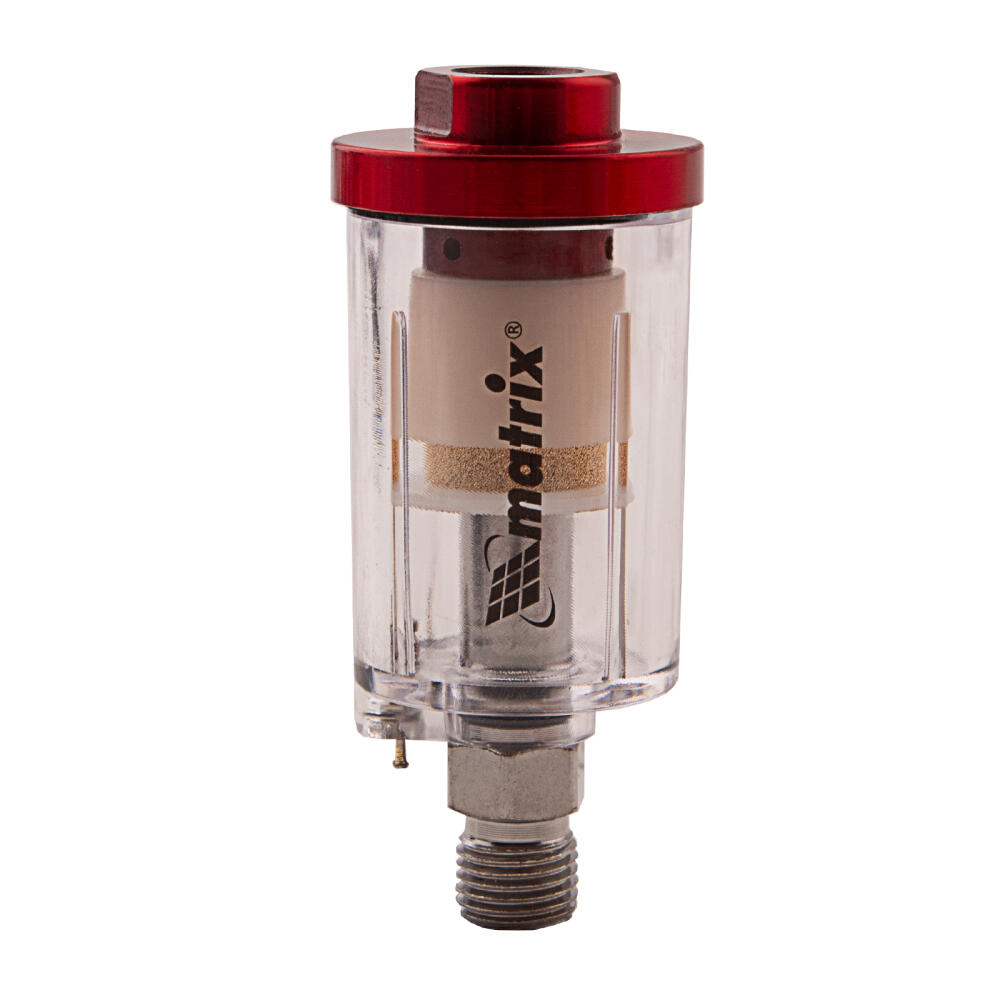 Влагоотделитель Matrix 57008 с присоединительной резьбой 1/4 дюйма используется в компрессорах для очищения воздуха под максимальным давлением до 8 бар от частиц масла, конденсата и фракций размером до 10 мкм. Он препятствует засорению пневмоканалов, предотвращает появление ржавчины и обеспечивает чистоту сжатого воздуха на выходе.