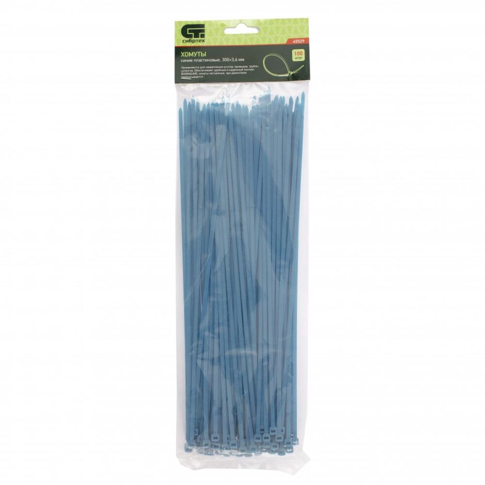 Синие пластиковые хомуты Сибртех 45529, 300 х 3,6 мм, 100 шт. в упаковке, используются для стяжки кабелей, закрепления трубок, шлангов, рекламных конструкций, а также для упаковки различных предметов. Пригодятся во время прокладки электрических и локальных вычислительных сетей, ремонта компьютерной техники, оформлении торговых стендов, комплектовании товара, будут также полезны дома, на даче и в гараже.