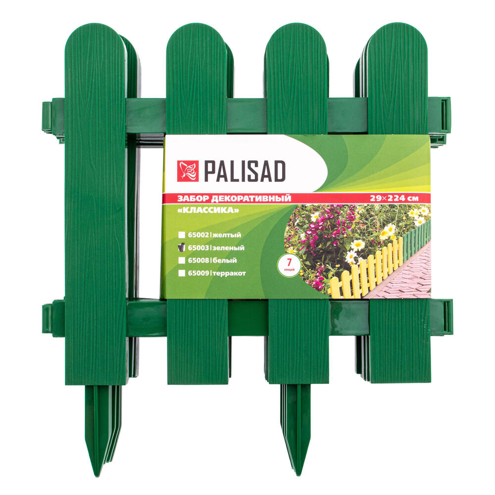 Декоративный забор Palisad «Классика» 65003 зеленого цвета, размером 29 х 224 см, состоит из 7 секций и позволяет выделить отдельные участки придомовой или дачной территории. Используется для декоративного оформления цветников, ограждения дорожек, грядок и газонов.