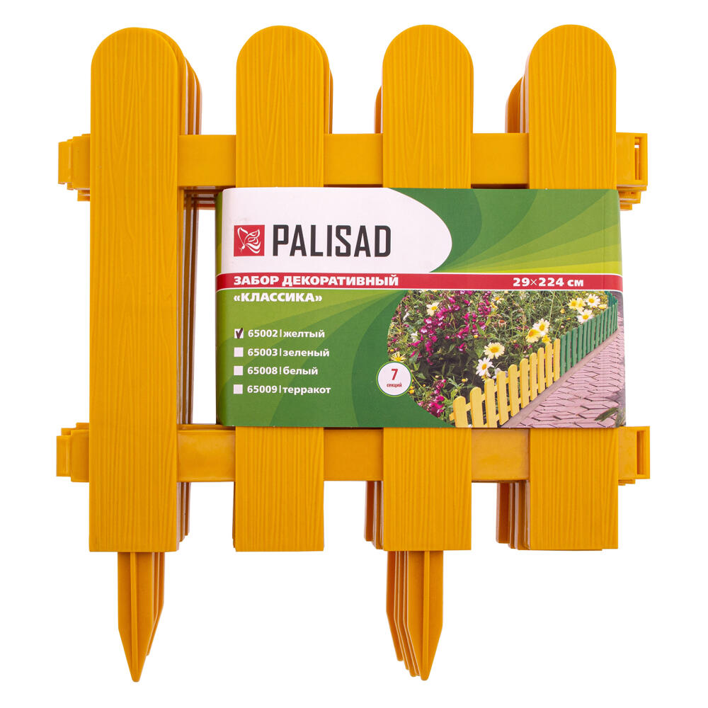 Декоративный забор Palisad «Классика» 65002 желтого цвета, размером 29 х 224 см, состоит из 7 секций и позволяет выделить отдельные участки придомовой или дачной территории. Используется для декоративного оформления цветников, ограждения дорожек, грядок и газонов.