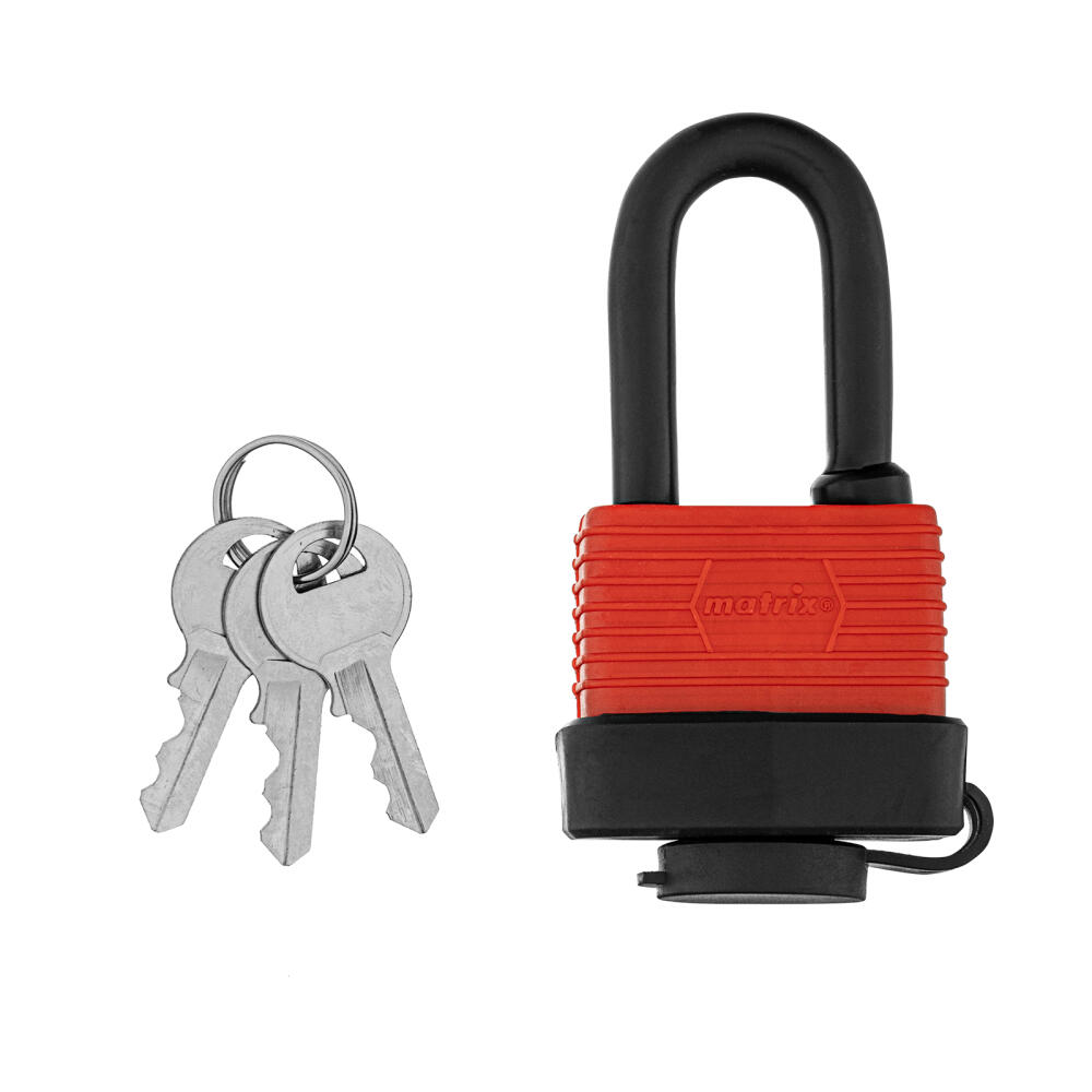 Навесной всепогодный замок Matrix 91822 шириной 40 мм, с удлиненной дужкой, вешается на дверь и обеспечивает сохранность имущества. Поможет защитить от несанкционированного проникновения сарай, гараж, подвал и другие помещения, подходит для высоких запорных петель.