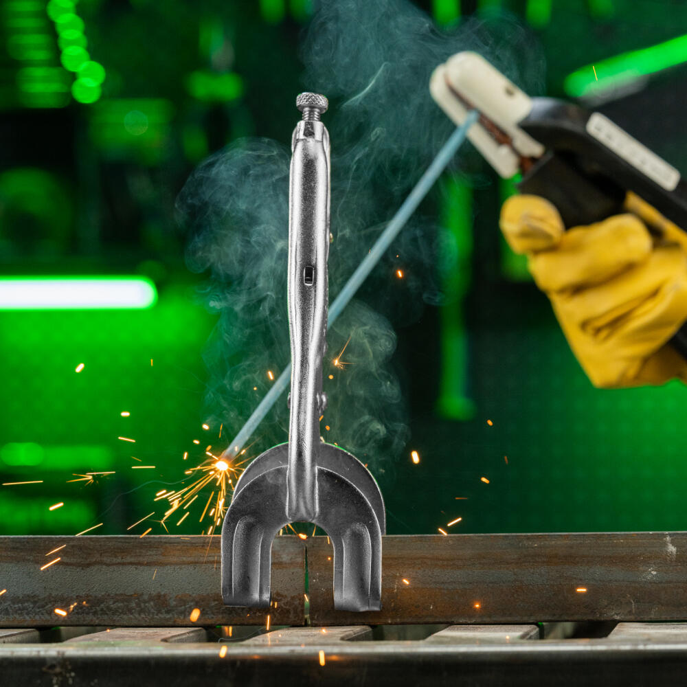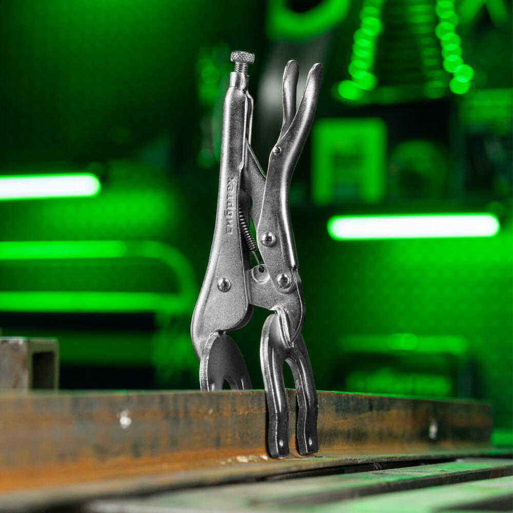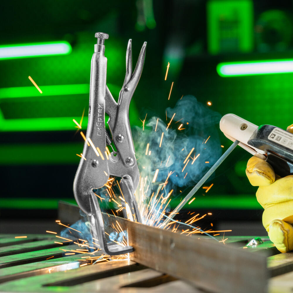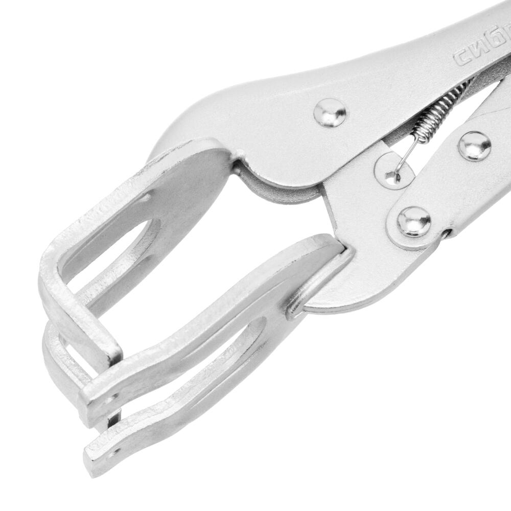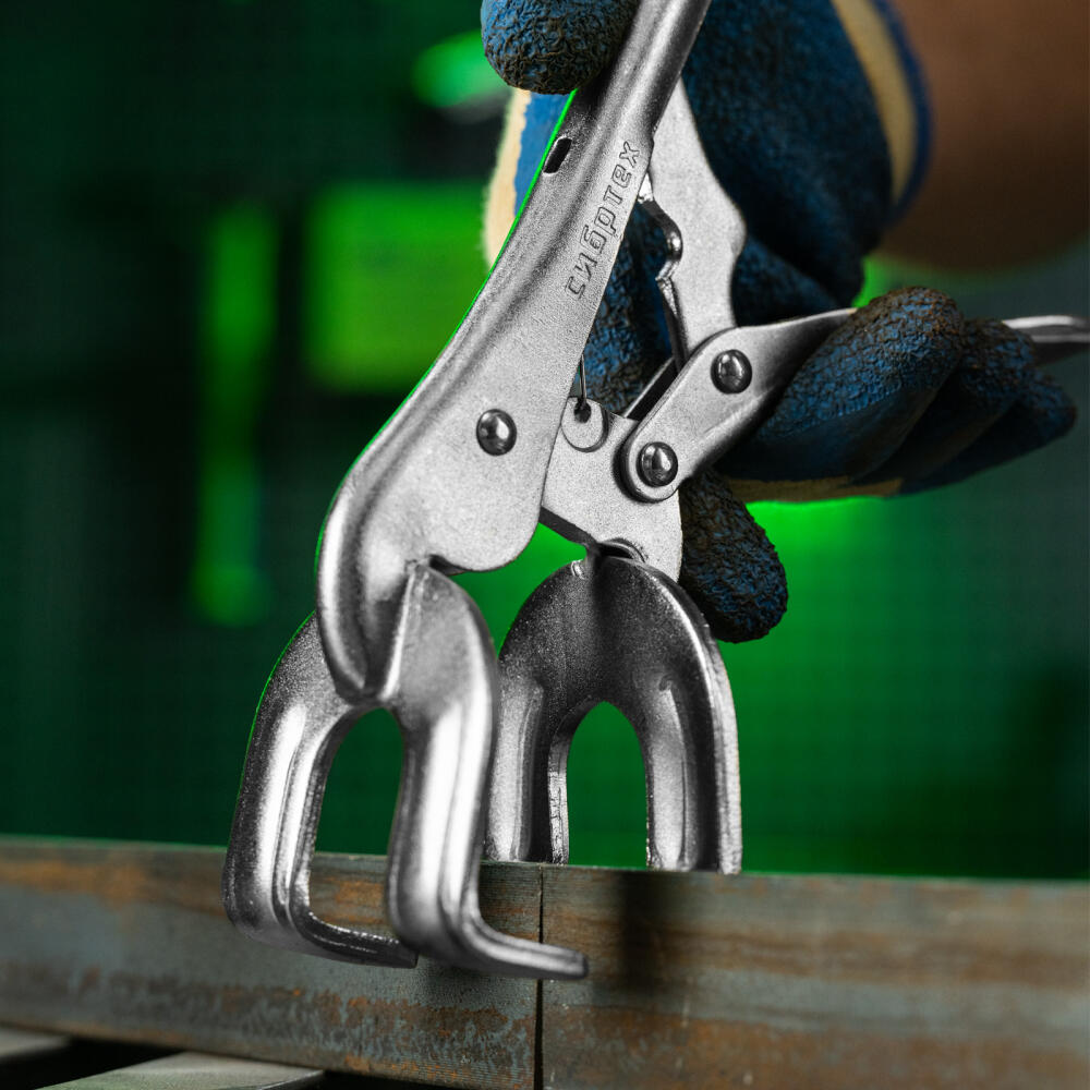 Двойной ручной зажим Сибртех 18429 длиной 225 мм используется для точечной фиксации деталей различной формы. Необходим во время проведения сварочных и слесарно-монтажных работ. Форма губок позволяет зажимать заготовки в двух точках одновременно, а запирающий механизм не дает им раскрыться.