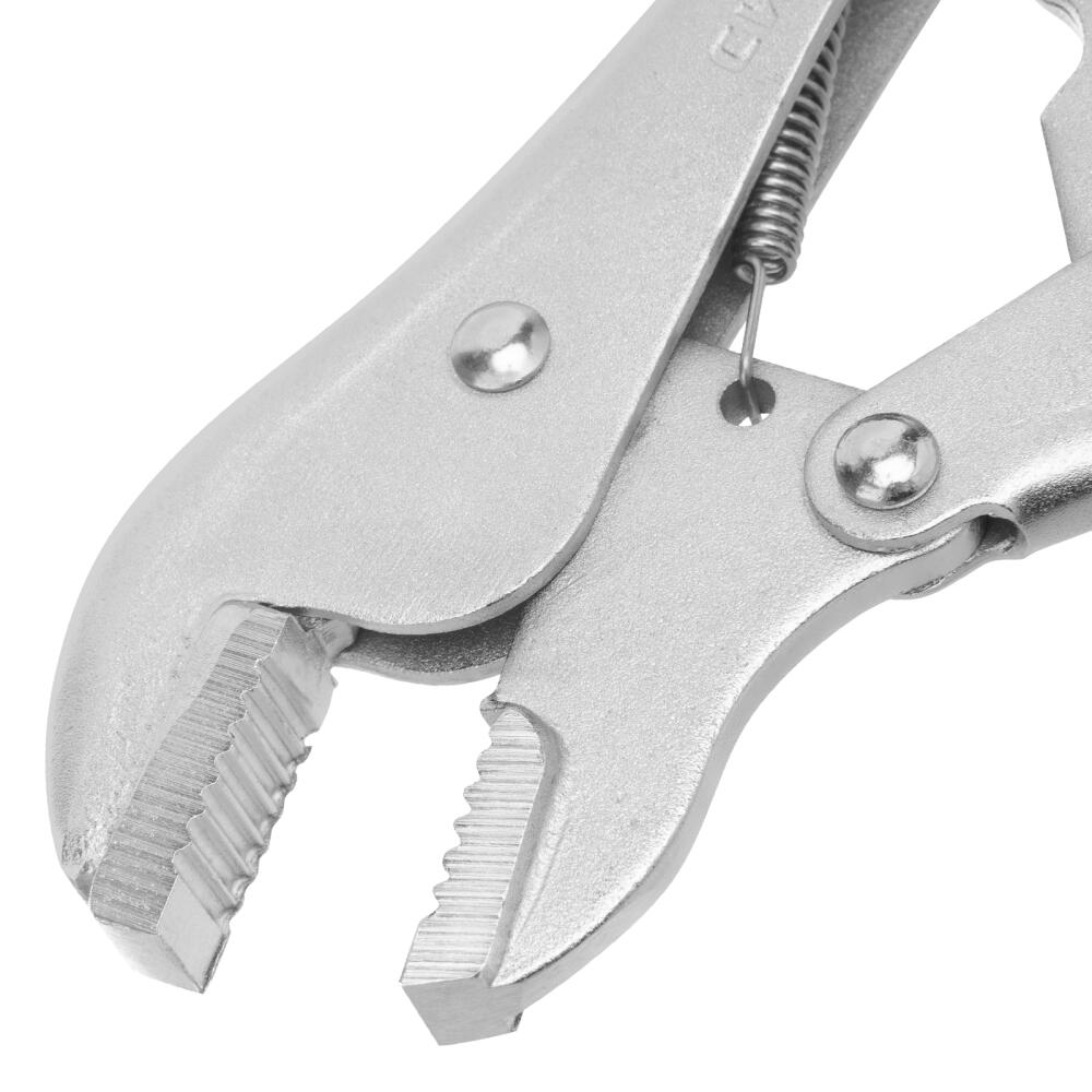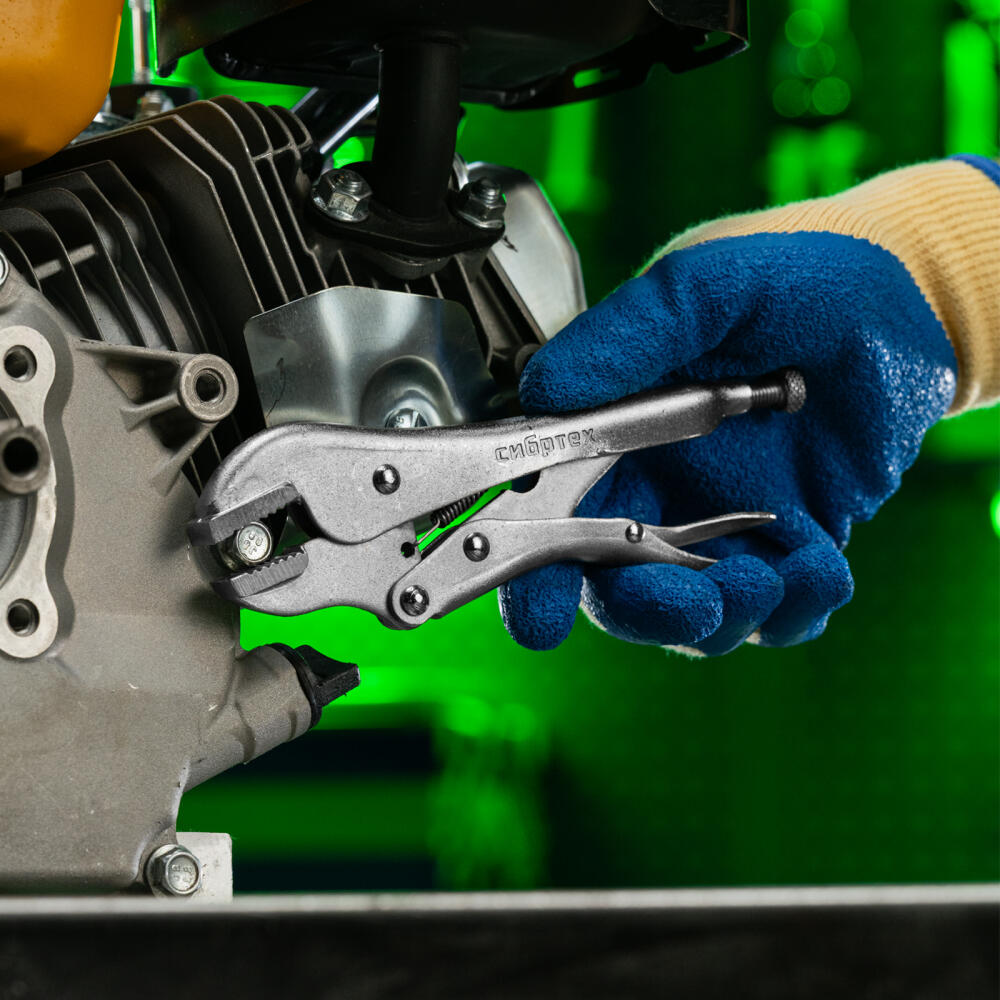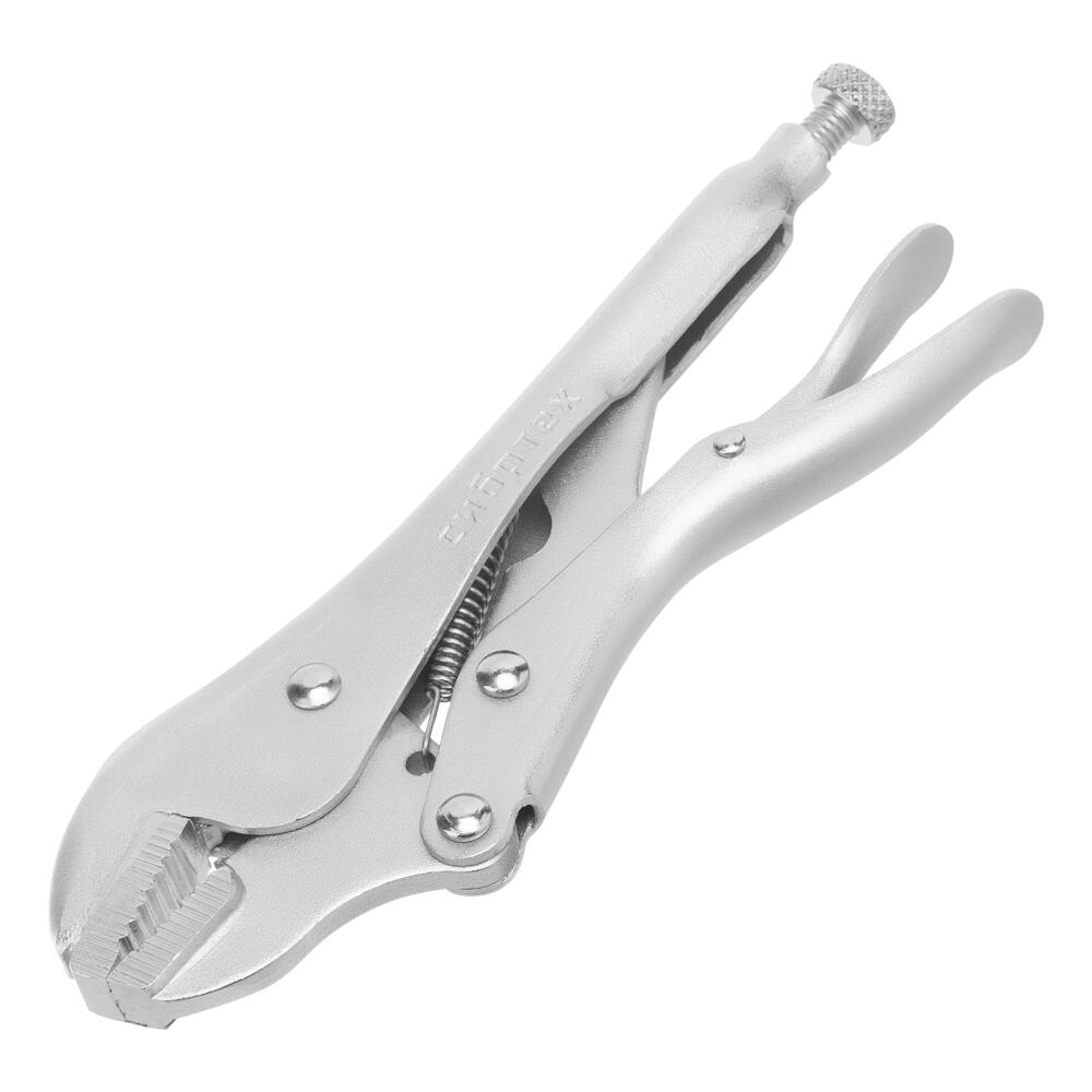 Усиленный ручной зажим Сибртех 18427 длиной 180 мм, с плоским захватом, используется для удержания различных предметов при проведении слесарно-монтажных и сварочных работ. Губки захватывают деталь, а фиксатор блокирует их в необходимом положении. Зажим популярен в профессиональной и бытовой сфере.