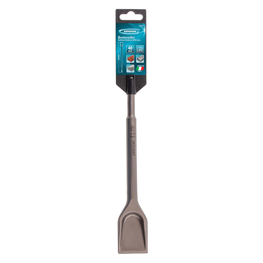 Лопаточное зубило Gross PRO 70317 размером 40 х 250 мм имеет хвостовик SDS PLUS и используется как оснастка для перфоратора. Предназначено для обработки камня, бетона, кирпича, битума. Зубило лопаточной формы оптимально подходит для проведения демонтажных и долбежных работ, удаления старой отделки и грязевых отложений, выполнения пазов, а также рыхления грунта.