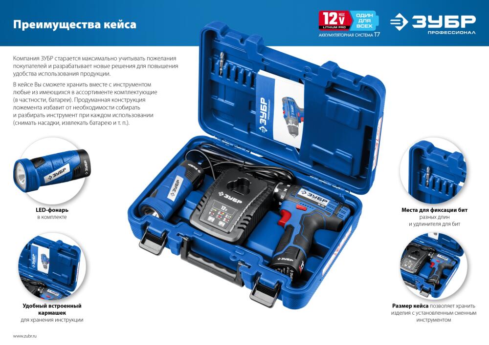 Компактный и производительный инструмент профессионального уровня. Надежная конструкция, мощный двигатель и высокая производительность позволяют закручивать крепеж диаметром до 8 мм даже в твердое дерево, а удобная эргономика помогает работать без усталости. Набор в кейсе с ярким светодиодным фонарем для работ в любых условиях освещения
