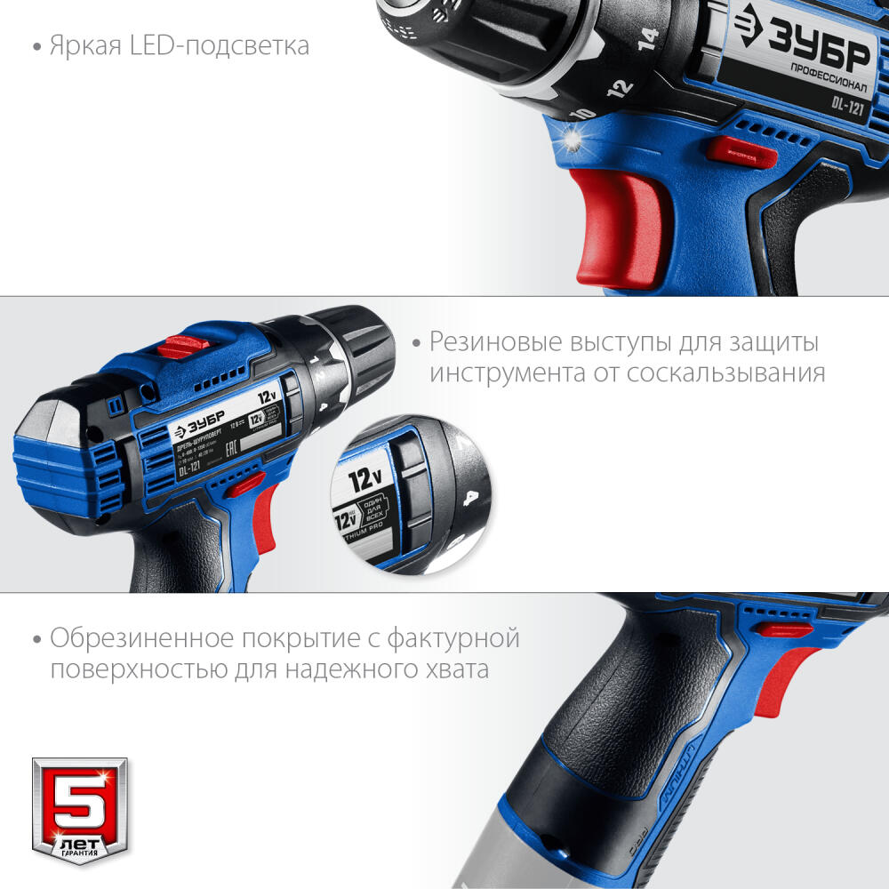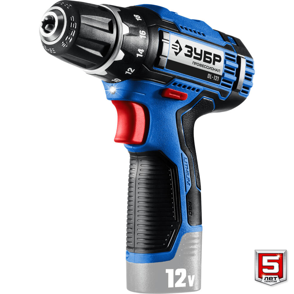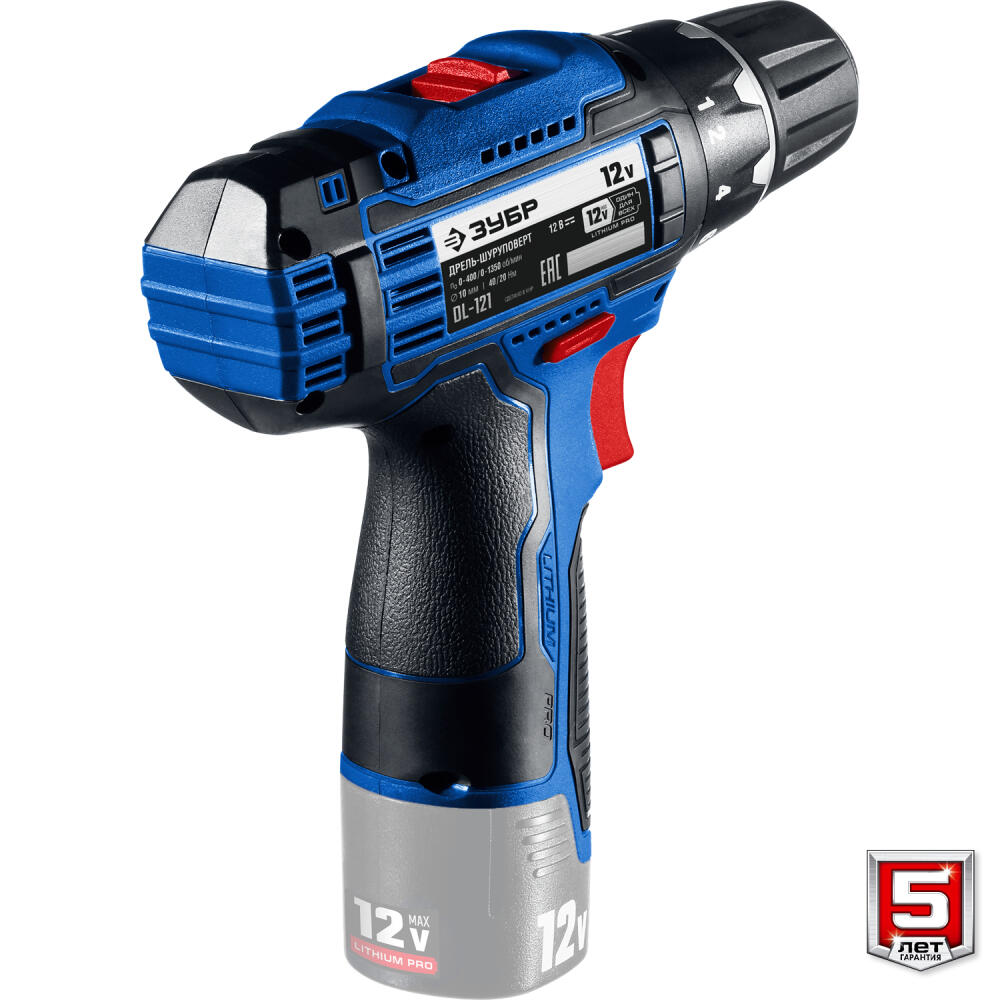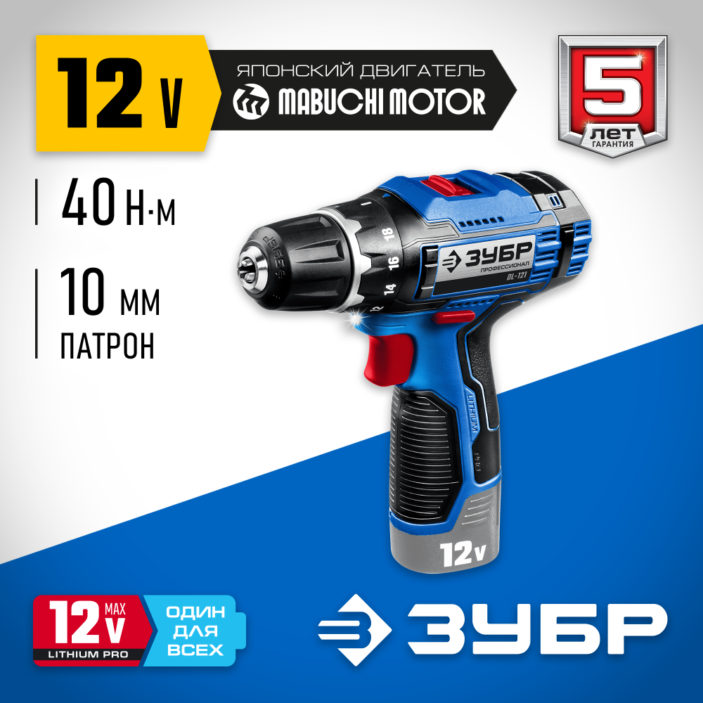 ЗУБР 12 В, 40 Н·м, без АКБ (тип Т7), дрель-шуруповерт, Профессионал (DL-121)